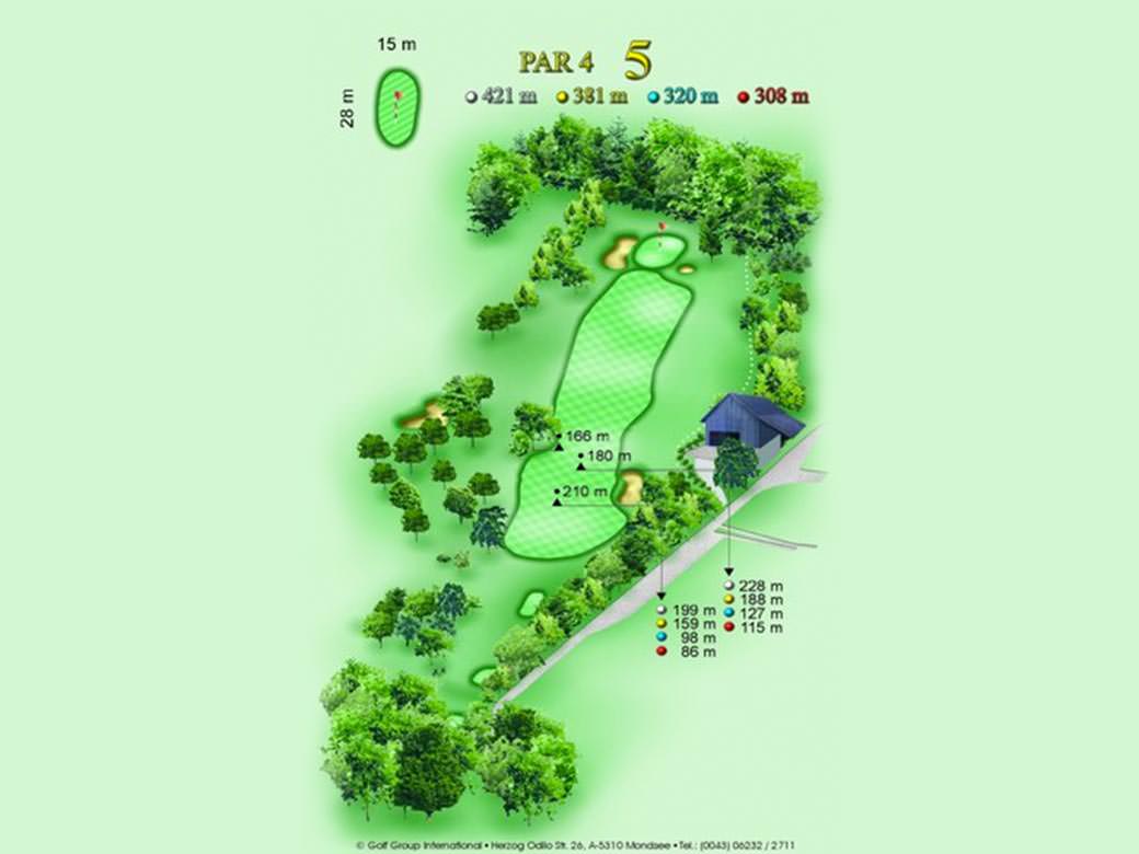Très long trou tout droit. Un bois de parcours ou un long fer est souvent nécessaire pour attaquer le green en deux. Green profond, bunkers des deux côtés, hors-limites derrière… Ce trou est vrai test pour golfeurs de tous niveaux.